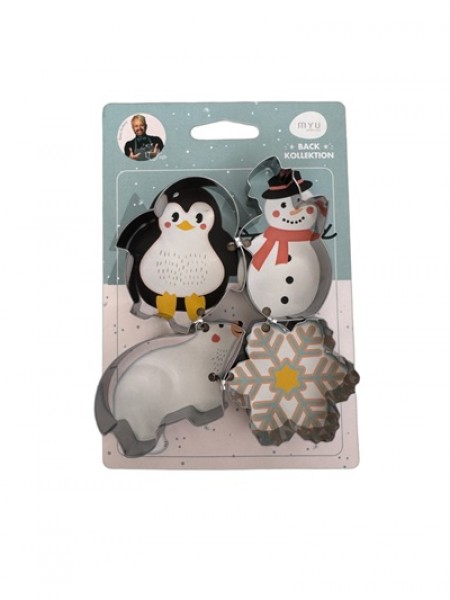 R Keksaussstecher 4tlg. aus Edelstahl, WeihnachtsmotiveMotiv: Pinguin, Eisbär, Schneemann, Eiskristall