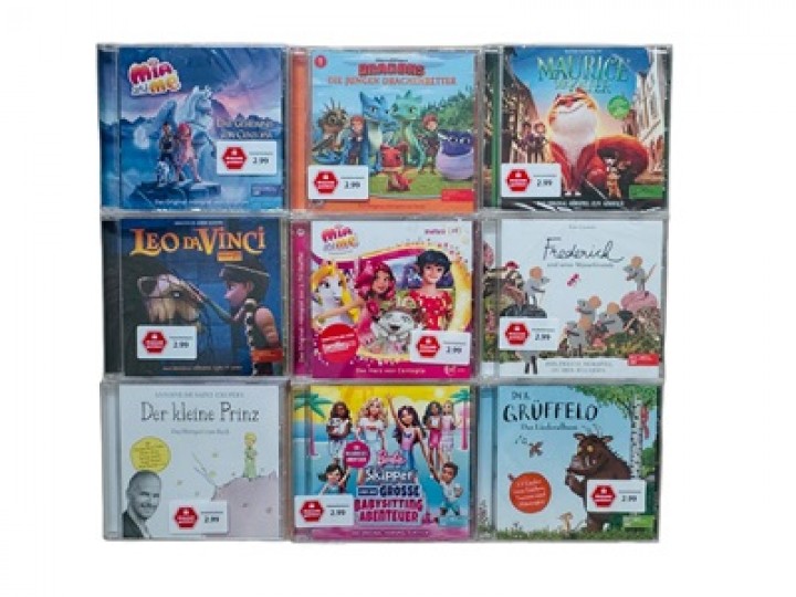 R CD's Hörspiel versch. Interpretenz. B. - Der kleine Prinz, - Barbie-Backen bis zum Umfallen, - Die Heinzels-Rückkehr der Heinzelmännchen, -Grueffelo das Liederalbum, - Dragons die jungen Drachenretter, -Sternenfohlen im Zauberwald, - My little pony eine neue Generation, -Mia and me das Herz von centopia, - Janosch ich mach dich gesund. usw.