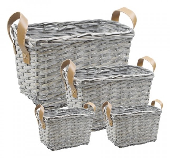 Korb-Set aus Weide 4tlg. rechteckig, grauMaterial: Weide, Lederimitat-Henkel