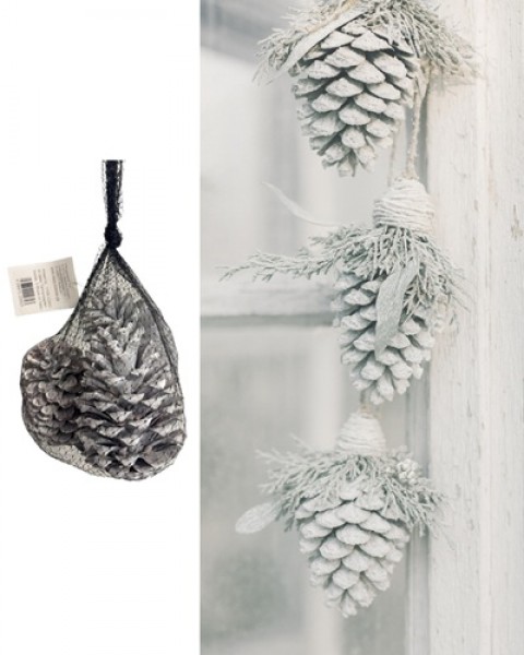 Produktinformationen "W Deko Tannenzapfen white-washed 3 Stück im Netz"