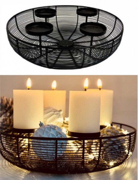 W Adventskranz aus Metall Ø 36,5 cm, schwarzFür 4 Stumpenkerzen Ø 75mm