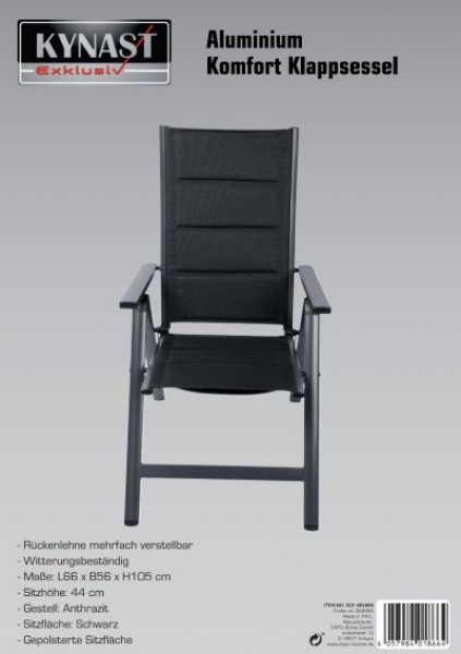 Gartenstuhl - Comfort, anthrazit-schwarzMaterial: Gestell - Aluminium,