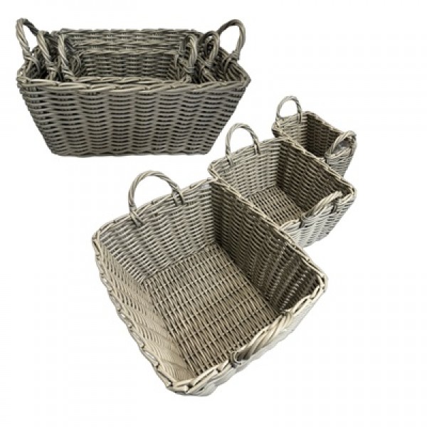 Korb mit Griffen 3er Set, geflochten, grauMaterial: rundes Polyrattan: ◊ 0,7 mm