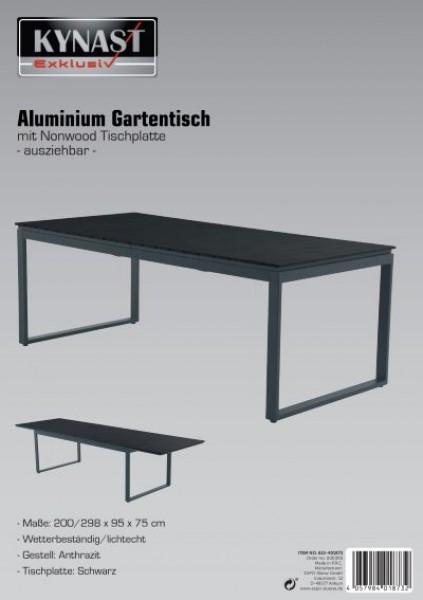 Gartentisch ausziehbar 200/298x95x75 cm mit Nonwood-Tischplatte, schwarzMaterial Gestell: Aluminum, Farbe: Anthrazit