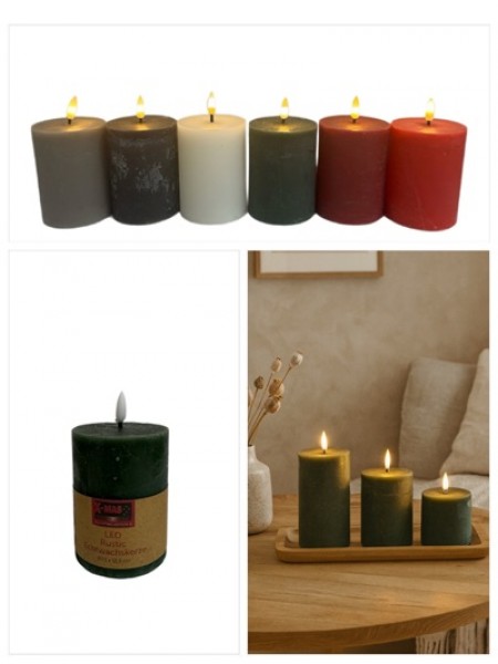 Kerze Rustic LED Echtwachs, flackernd Ø 7,5 x 12,5 cm mitTimer in 6 Farben