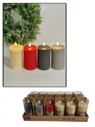Kerze mit Rillen LED Echtwachs Ø 7,5 x 15 cm, flackernd mit Timer in 4 FarbenRustic-Kerze mit Rillenrelief