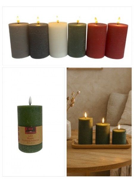 Kerze Rustic LED Echtwachs, flackernd Ø 7,5 x 15 cm mit Timer in 6 Farben