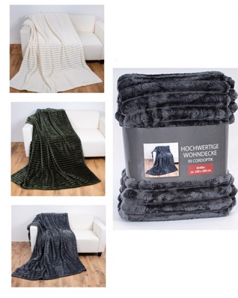 Decke in Cordoptik 150x200 cm, 3 FarbenHochwertige Wohndecke in Cord-Optik